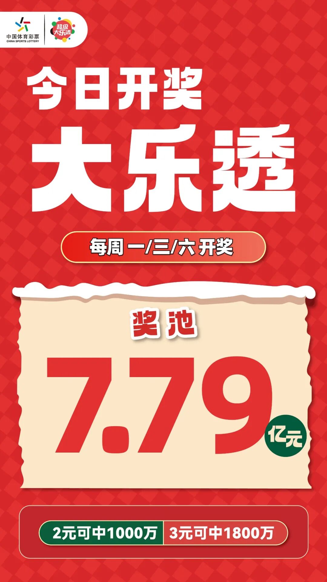 今日开奖,奖池7.79亿元