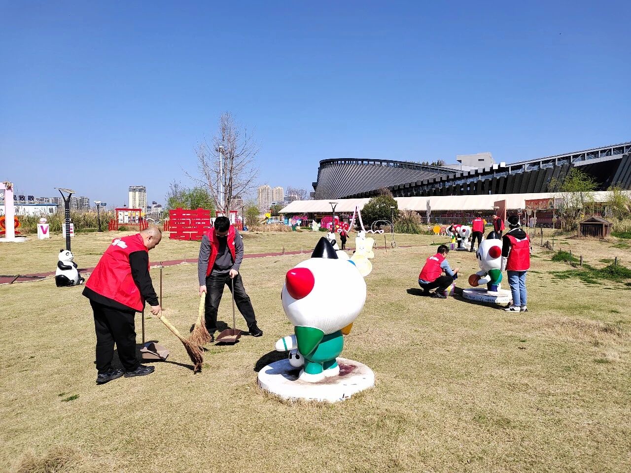 活动当天,全体党员及职工精神饱满、热情高涨,在熊猫集市乐小星雕像前集结,手持扫帚、垃圾袋、抹布等清洁工具,迅速投入到环境清理工作中。大家分工协作、密切配合,重点对集市公共区域、绿化带、摊位周边的白色垃圾、果皮纸屑、废弃包装物等进行全面清理,对容易被忽视的卫生死角进行彻底整治,力求做到“清理一处、整洁一处”。同时,严格按照生活垃圾分类要求,对收集的垃圾进行初步分拣、分类装袋,统一运送至指定回收点,积极倡导绿色环保理念。此外,对集市内的体彩吉祥物乐小星雕塑进行认真清洁维护,让其恢复洁净本色,直观传递体彩“公益、健康、乐活、进取”的品牌形象。