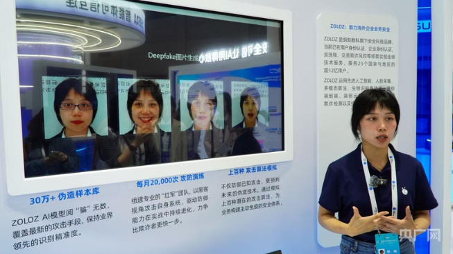 眼前这位工作人员刚拍下一张照片,几秒钟后屏幕上却出现了多张“她”的静态和动态图像:戴眼镜、张嘴、眨眼、微笑,动作惟妙惟肖。9月15日,在2025年国家网络安全宣传周网络安全博览会现场,蚂蚁集团天玑实验室展示的深度伪造AI换脸(Deepfake)生成演示,让不少观众直呼“眼见未必为实”。