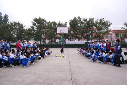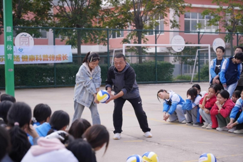 捐赠仪式后,校园操场瞬间变成了欢乐的海洋。两名专业运动员带领孩子们开展篮球、排球等项目的趣味体验活动,投篮挑战、传球互动等小游戏接连不断。孩子们踊跃参与,奔跑、跳跃、欢呼,尽情释放朝气与活力。