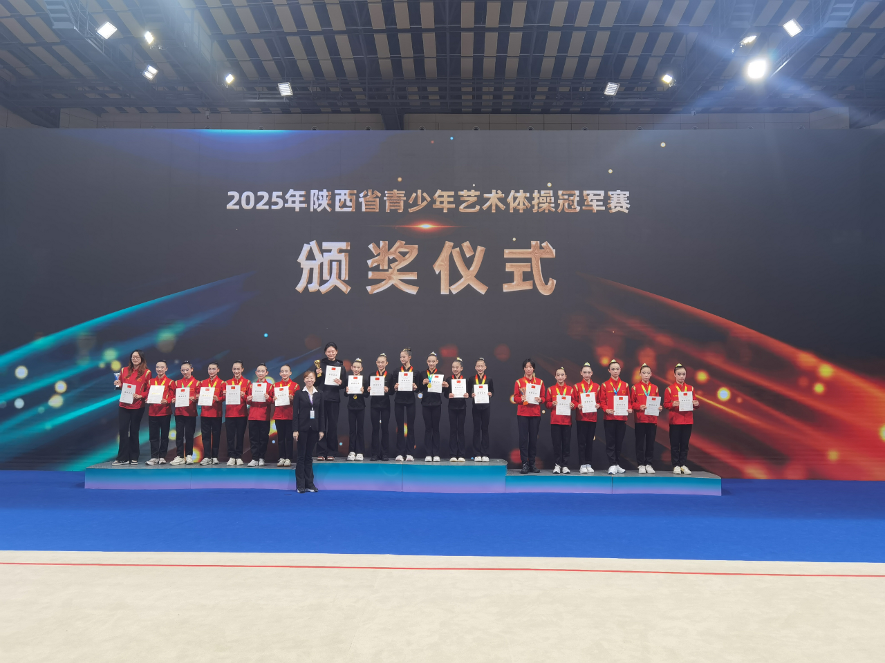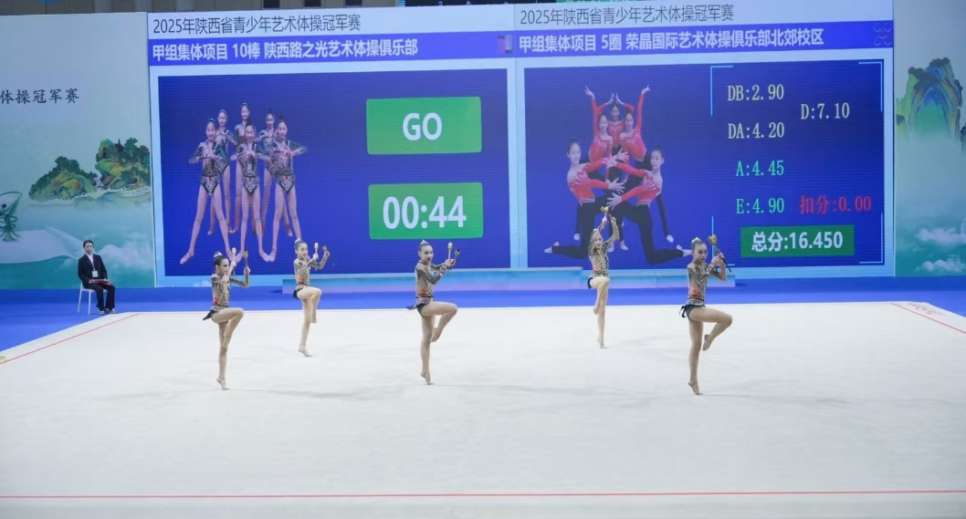 2025年陕西省青少年艺术体操冠军赛9月27日至28日在铜川体育馆举行,共有来自省内13支代表队的近200人参加。