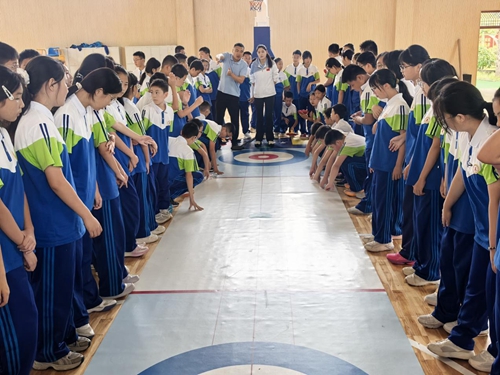 第一初级中学开展了“冰雪运动模拟赛”,学生在陆地冰壶体验区研究投掷角度与力度,感受冰雪竞技魅力。一位参与模拟赛的学生说:“这个模拟赛太刺激了,感觉就像在真正的赛场上一样。我刚才和队友一起商量战术,互相配合,虽然最后没有赢,但我们都特别开心。通过这次活动,我不仅学会了怎么投冰壶,还明白了团队合作的重要性。”
