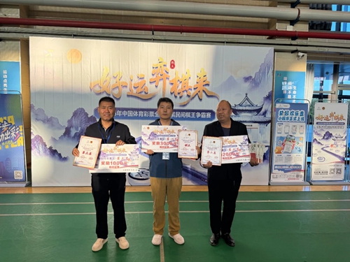 最终,通过积分编排、对阵分组等方式,经过半天时间的比赛角逐,诞生出了前三名,他们分别是棋王胡伟平、第二名王永龙、第三名任东风,并荣获价值3000元、2000元、1000元的中国体育彩票顶呱刮即开型彩票,同时这三名大将也将代表铜川市出战陕西省省级民间象棋决赛。活动最后由铜川市体育局副局长张辉及铜川市体彩管理站站长王锐为所有参赛选手颁发荣誉证书和体彩送出的大乐透彩票一张。