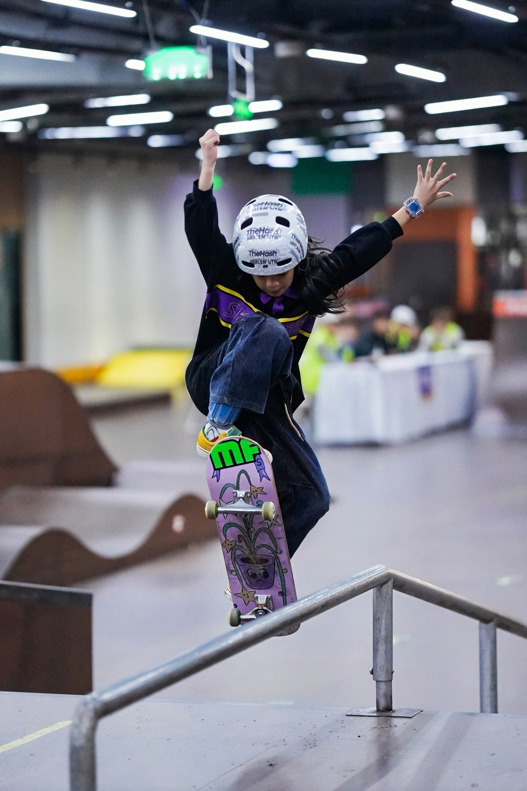 在U12与U15女子街式项目合组角逐中夺冠的王悦迩分享心路历程:“今天决赛我其实挺紧张。在西安和阎良举行的分站赛上我都拿了冠军,很想实现‘大满贯’。看到同组选手发挥出色,压力更大。幸好教练及时指导战术,妈妈也一直鼓励我,让我稳住心态,最终顺利完成动作。拿到冠军特别激动,感谢所有人的支持!”