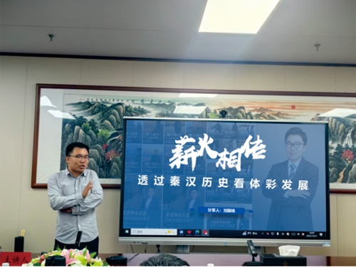 本次培训特邀著名历史文化学者、陕西旅游形象大使刘国杨担任主讲嘉宾。刘国杨老师以秦汉历史发展脉络为轴线,深入浅出地阐释了秦汉时期在制度建设、组织管理、资源调配等方面的智慧,紧密结合陕西体彩业务核心,将历史镜鉴与现实应用深度联结,为陕西体彩提供了宝贵的知识和工作启示。