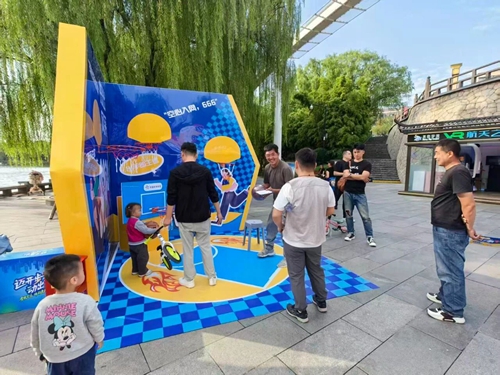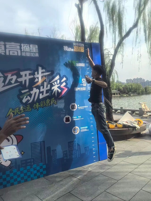 在运动体验区中,篮球投篮与跳高摸高活动受到广泛欢迎,参与人群络绎不绝,无论是大朋友还是小朋友,都积极踊跃的参与其中,在锻炼身体的同时也完成了活动印章的收集。