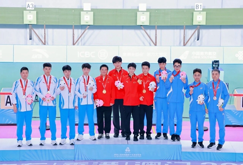 “能够拿下男子10米气步枪团体项目的金牌,所有人都倍感振奋。年轻队员完成了由青涩向成熟的跨越。李牧原作为年轻运动员,在场上展现出了超越年龄的沉稳与实力,克服心理压力,每一枪都高质量地完成。这块金牌为我们接下来的比赛提供了坚强信心。我们将卸下包袱、轻装上阵,带着这份从容与自信,再创佳绩。”主教练秦国富难掩激动。