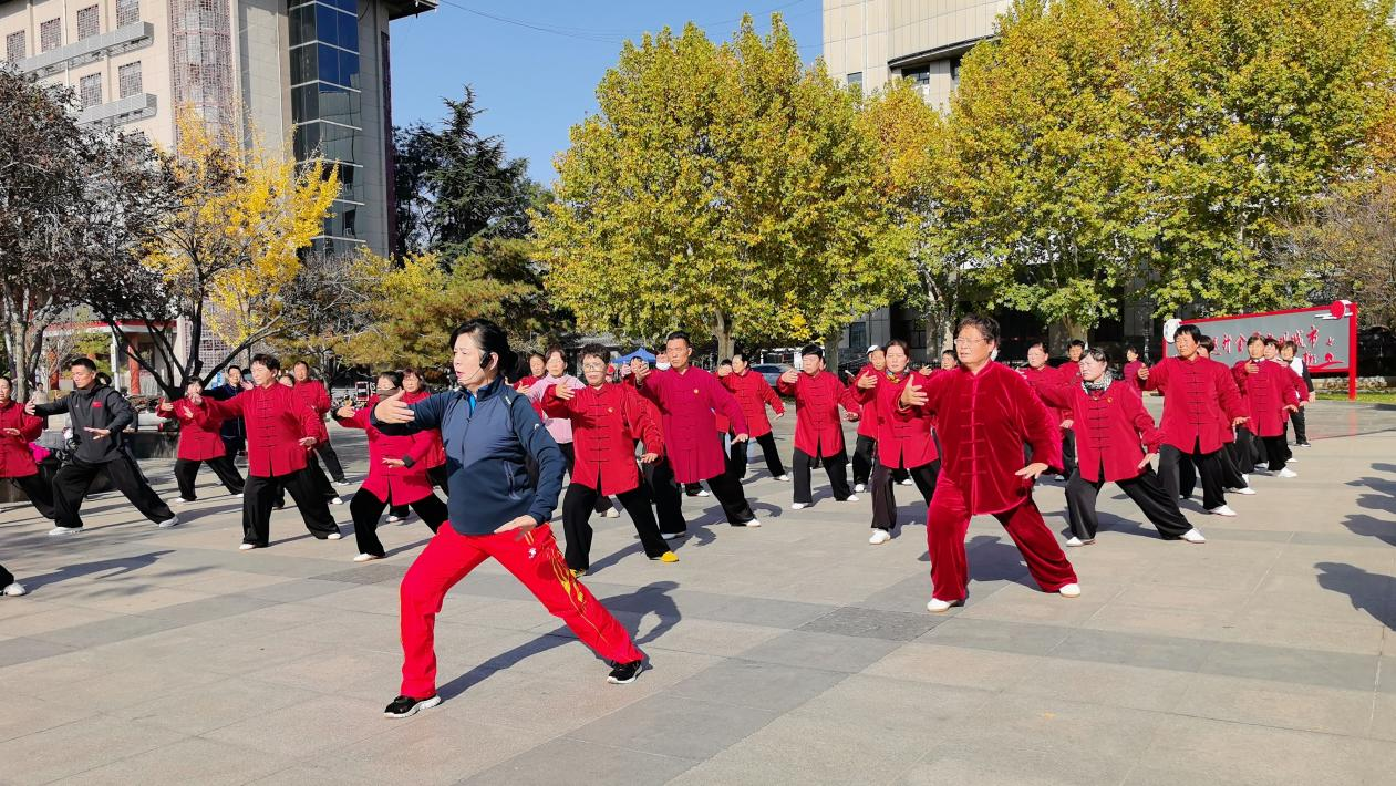 铜川市耀州区人民政府广场前,太极拳教学同样精彩。中国武术七段、国家级非物质文化遗产红拳传承人乌福娟围绕基础动作规范展开指导,只见她来回穿梭在队伍中,帮助学员调整重心位置与手臂弧度,并反复提醒在练习过程中会出现的一些错误动作。谈及教学初心,乌福娟分享道:“太极拳既能调节呼吸、改善体态,还能帮助缓解生活压力。这样有益的传统武术项目,我有责任把它教好、传承好,让更多人感受到传统武术的独特魅力。”