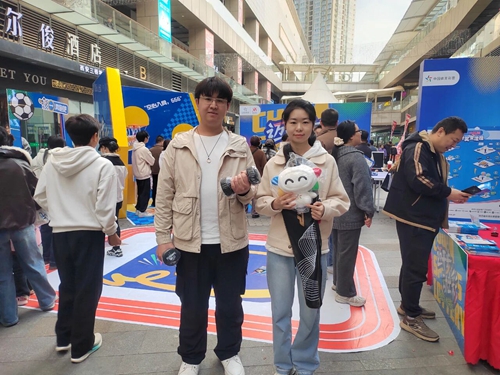 本次活动采用打卡集章抽奖的方式进行奖品的发放,参与者领取打卡卡片后穿梭于各互动区域,集齐6枚印章即可获得一次抽奖机会。张先生(化姓)拿着兑换的奖品笑着说道:“在逛街的同时既能运动解压了解体彩知识,又能收获体育用品这样的奖品,活动挺有意义的,我感到非常幸运。”