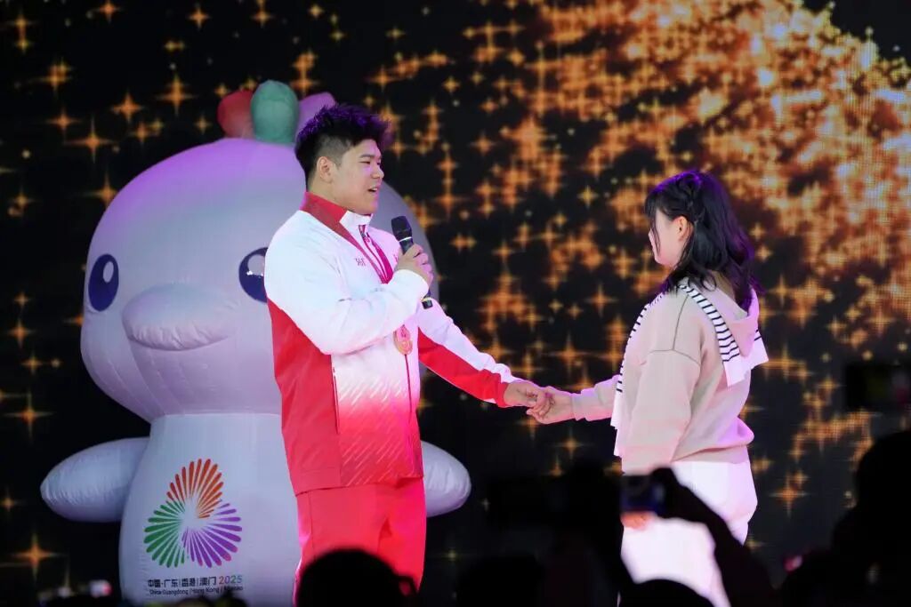 11月19日,天津队选手刘焕华(左)在赛后向女友求婚。