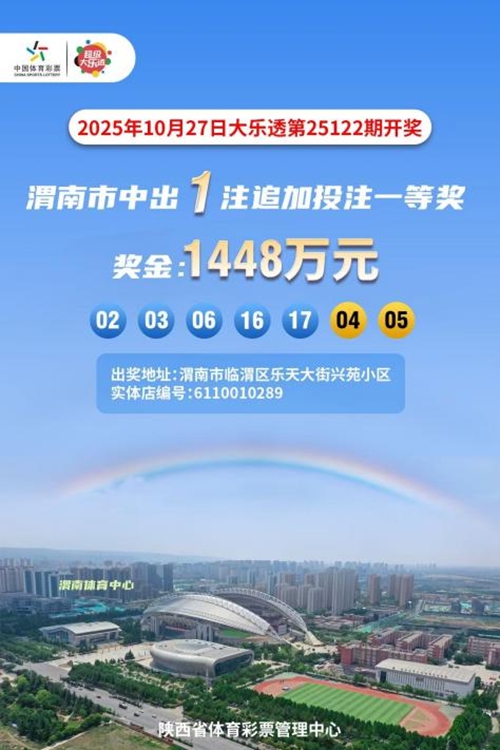 10月27日超级大乐透第25122期开奖,我省中出1注追加投注一等奖,其中一等奖基本投注奖金8046946元,一等奖追加投注奖金6437556元,合计当期一等奖奖金1448万余元。大奖出自渭南市临渭区乐天大街兴苑小区东50米的体育彩票店,实体店编号:6110010289。这也是今年以来我省中得的第25个大乐透一等奖。渭南中奖者已于11月4日到省体彩中心兑取了大奖。