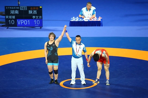 在女子拳击60公斤级争夺中,25岁的陈姿伊格外低调,决赛面对2023年女子拳击世锦赛冠军杨成宇,战术准备十分充分,在灵巧的防守反击中顿挫对方凌厉的进攻,最终争取到全面反击的机会;同样在女子自由跤76公斤级的决赛场上,陕西新秀李文吉在开局2:6落后的情况下,面对多次战胜过自己的黄媛媛,不言放弃,不断调整战术,灵活应变,在比赛临近最后一刻对手陷入战术保守状态时,果断出击,逆转比分——这,就是敢打敢拼!
