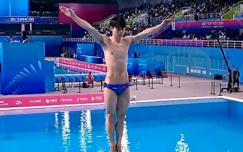 当天上午的比拼中,陕西队率先在男子双人3米跳板项目上发力。白钰豪/刘豪组合以218.58分位列第五,杨水寒/姚泽雄组合获200.82分排名第十。随后的男子单人10米跳台赛场上,2011年出生的陕西小将赵仁杰成为焦点。这位曾在2025年全国跳水冠军赛斩获男子10米台亚军、并以中国跳水队最年轻选手身份征战新加坡世锦赛的新星,虽在第三次试跳后排名跌至第六,但凭借强大的抗压能力,第5跳,赵仁杰凭借109C,难度系数3.7,得到全场最高的98.05分,排名重回榜首,最终以493.80分获得该项目的第一名,助陕西队以1356.98分暂列团体总分第二。