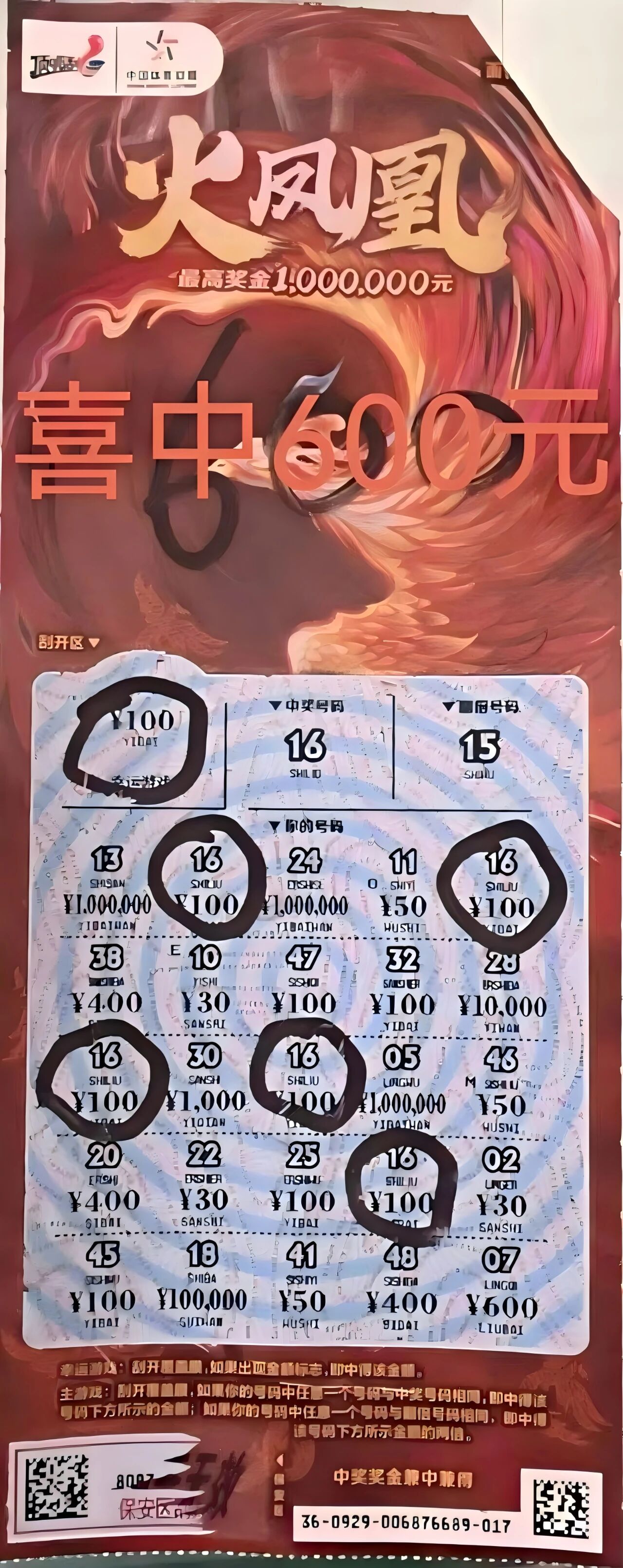 王先生(化姓)是一名体育彩票忠实购彩者,前几天下午来到了位于渭南市大荔县天桥东路时代新城6110011802实体店内,准备像往常一样,随便刮两张“顶呱刮”即开彩票。听代销者介绍了本次活动的玩法后非常感兴趣,随机挑选一本“火凤凰”就刮了起来,中了600元奖金,随后通过扫码又赠送了3元的大乐透彩票。王先生表示,这种玩法非常有趣,能够中奖还能获赠大乐透彩票,这是分外之喜。以后还会继续关注顶呱刮,关注公益体彩。