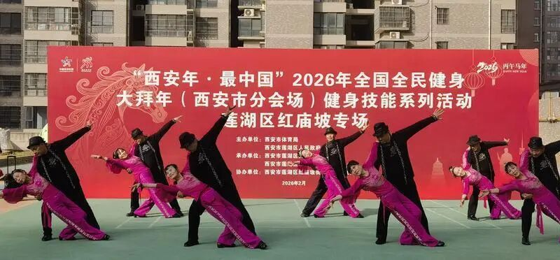 2026年全国全民健身大拜年(西安市分会场)健身技能系列活动2月12日在莲湖区红庙坡专场举行,200余名市民群众热情参与,以运动方式共度健康年、欢乐年。