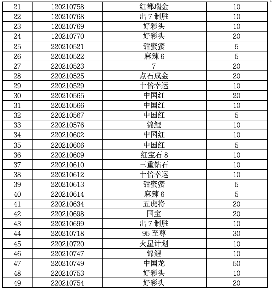 本次相关的即开型体育彩票内容如下表: