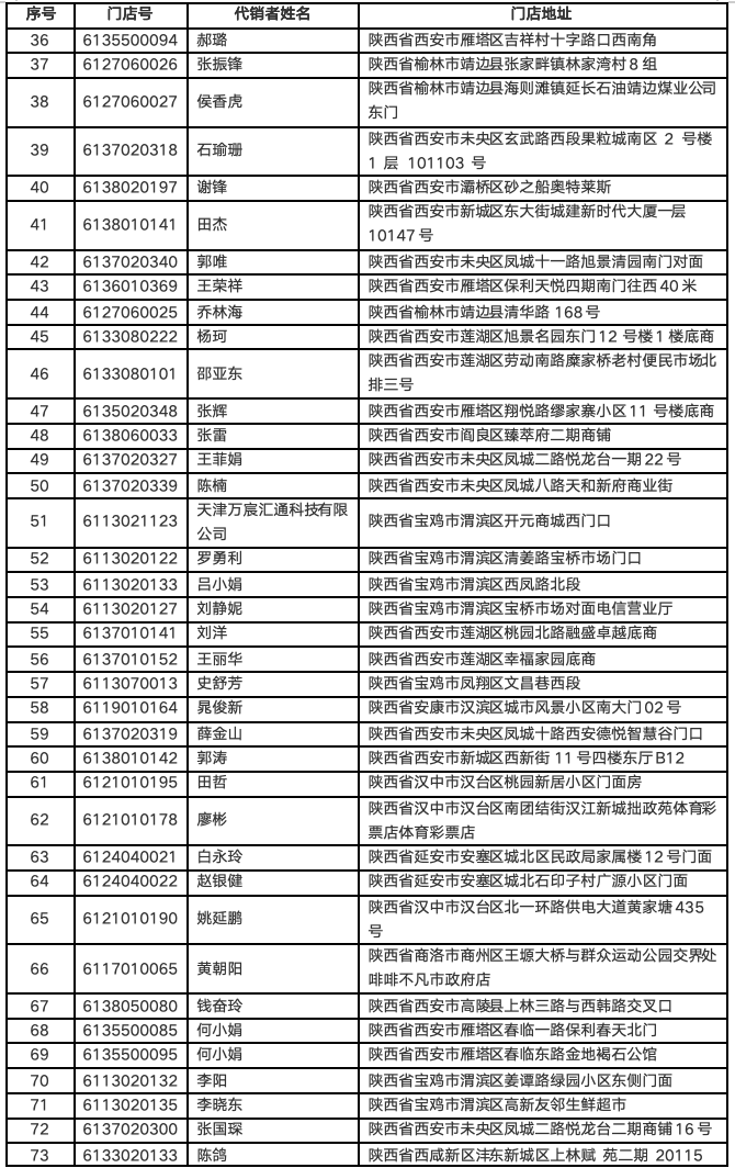 中国体育彩票致力于“建设负责任、可信赖、高质量发展的国家公益彩票”。陕西体彩始终坚持销售安全健康的彩票游戏,持续规范并优化渠道管理,践行“多人少买”的理性购彩理念,将责任理念和要求融入到销售各环节中,保障体育彩票代销者和购彩者合法权益,切实履行国家赋予的光荣职责,成为可信赖的国家公益彩票。为进一步规范渠道建设,现将12月新增实体店明细进行公示。
