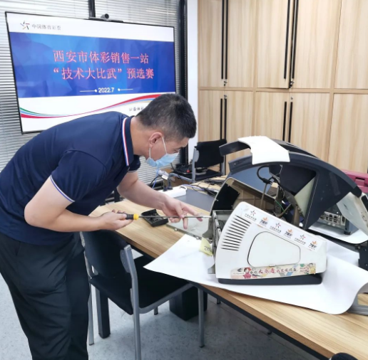 为扎实落实省体彩中心2022年首届以“学标杆,当能手”为主题的业务技能比武大赛专项行动,同时提升业务员的终端机维修实操水平与团队凝聚力,西安销售一站于7月22日开展全体业务员终端机操作比赛。