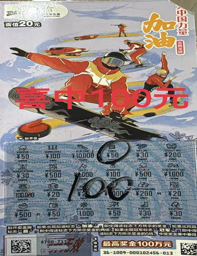 张先生对即开票情有独钟,每次有新票上市,他总会第一时间到店尝试,既是休闲娱乐,也为支持公益事业添一份力。“听说‘为中国力量加油雪舞龙腾’到货了,我立马就过来了!" 张先生笑着说道,这款以冰雪运动为主题的新票,刚一亮相就抓住了他的目光。没想到惊喜连连,他连着中了两个100元。