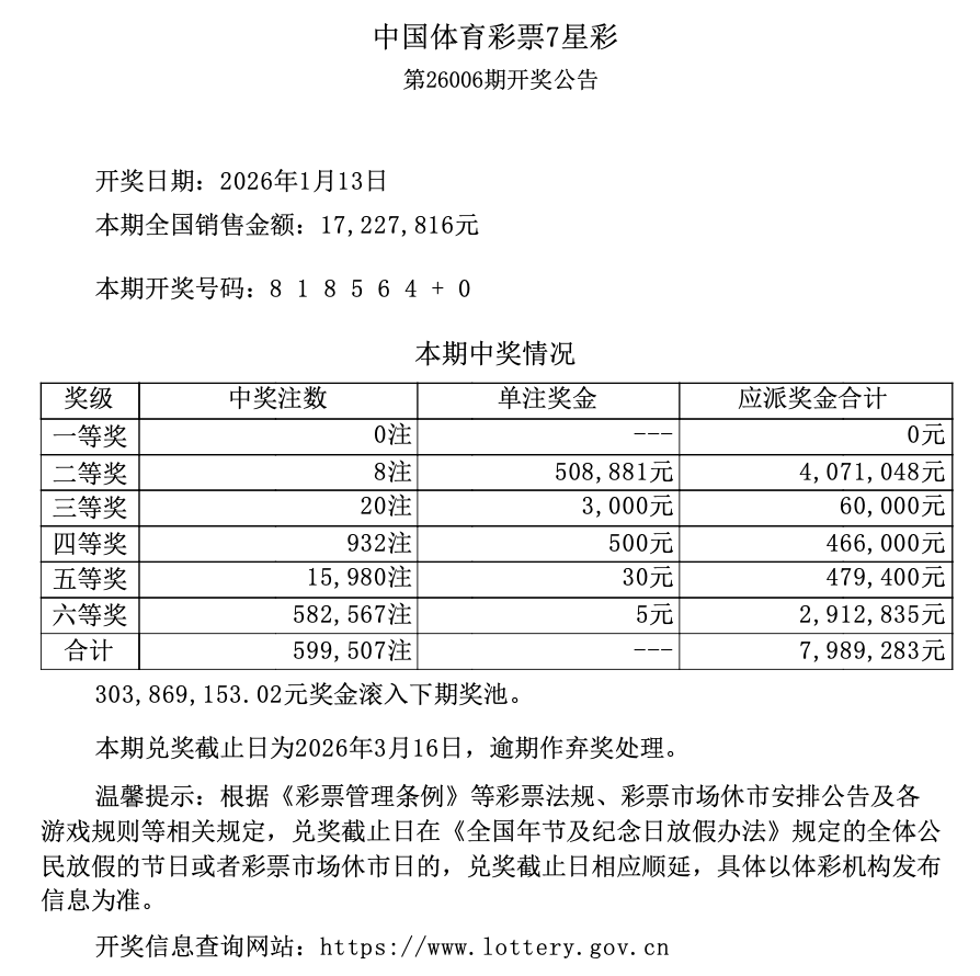 第26006期开奖公告