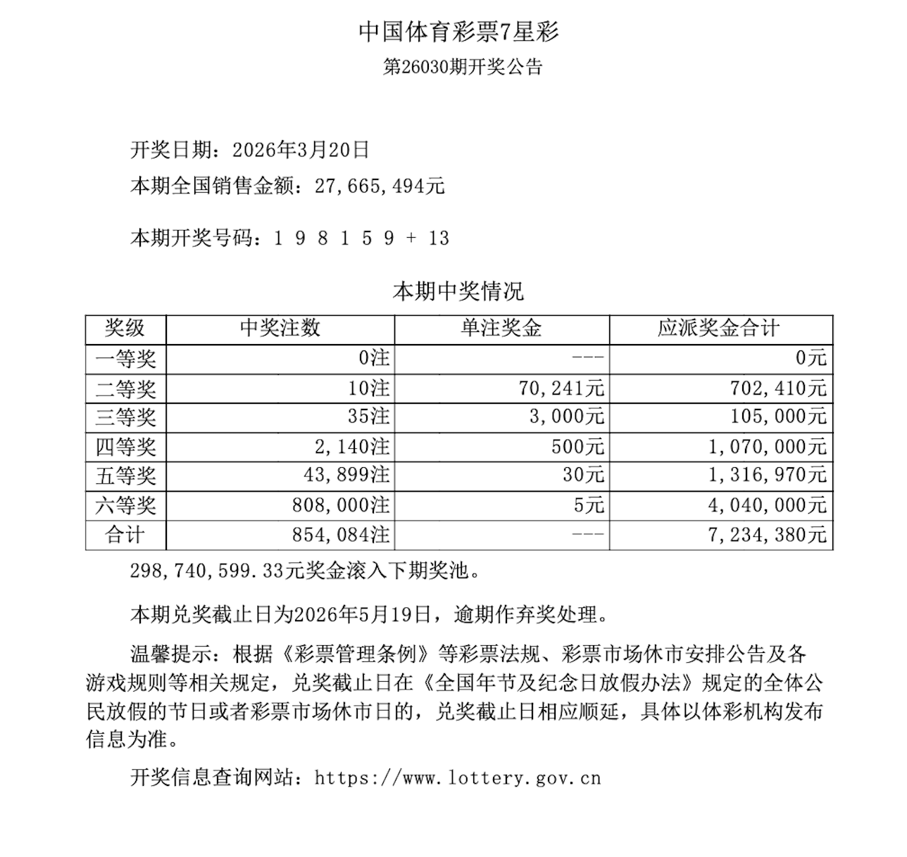 第26030期开奖公告