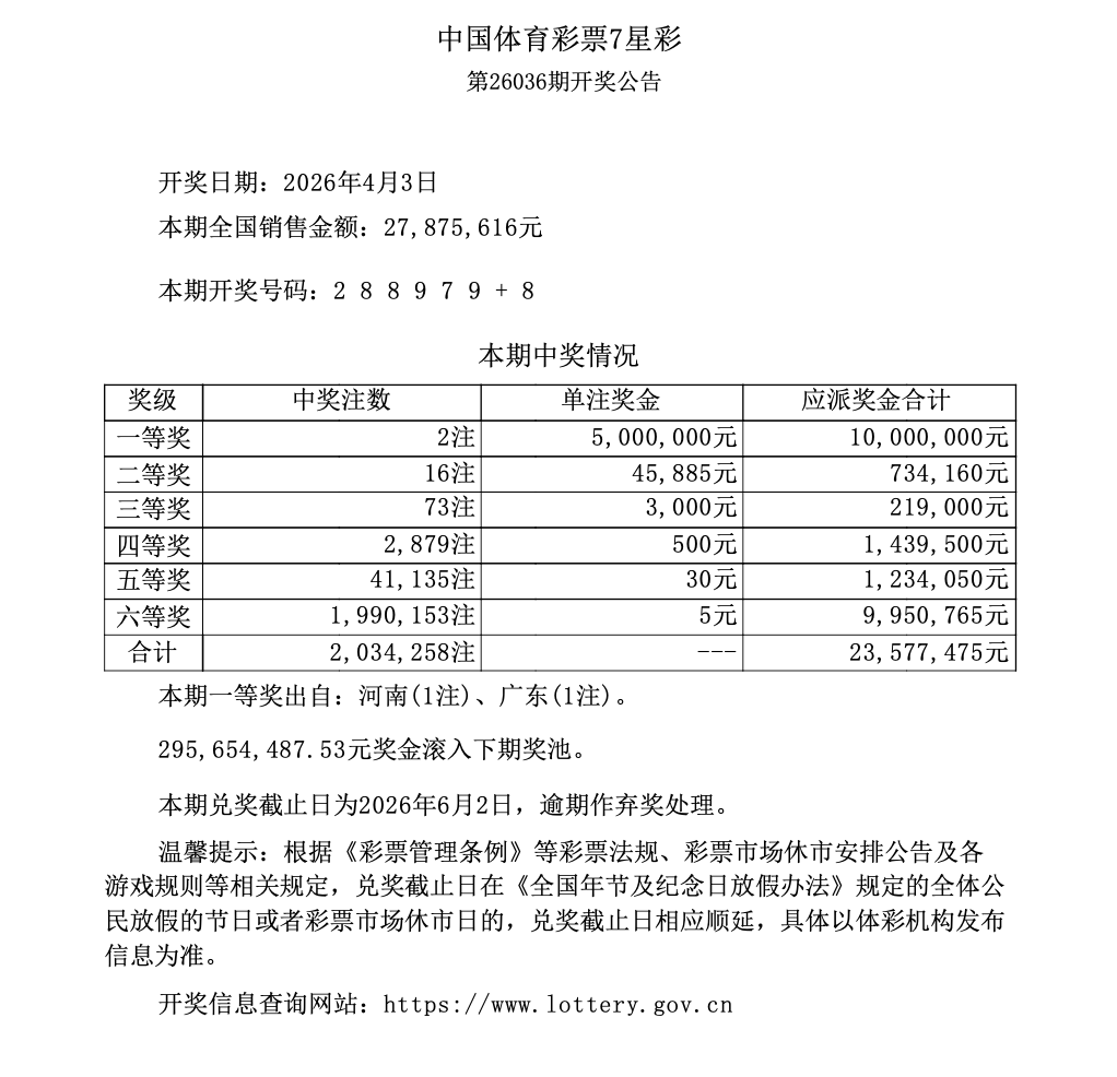 第26036期开奖公告