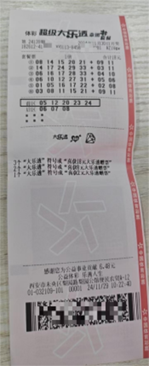 这张中奖票出自于西安市莲湖区体彩6101032109号销售实体店,购彩者周先生(化姓)看到有促销活动后,随手买了一张,结果好运降临。得知中奖后,周先生喜悦的无以言表,在终端机兑奖,确认了中奖的事实,可喜可贺。