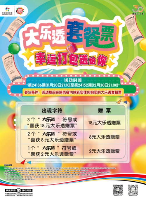 大乐透套餐票共有四款,分别为18元、28元、58元、88元多种贴心价位可供您选择。18元套餐将“5+3”与6注单式巧妙搭配,28元套餐票将“6+2”与8注单式完美融合,若是票面出现“大乐透”字符,还可获得额外2元、8元、18元的赠票,幸运翻倍。目前,活动正在火热进行中。