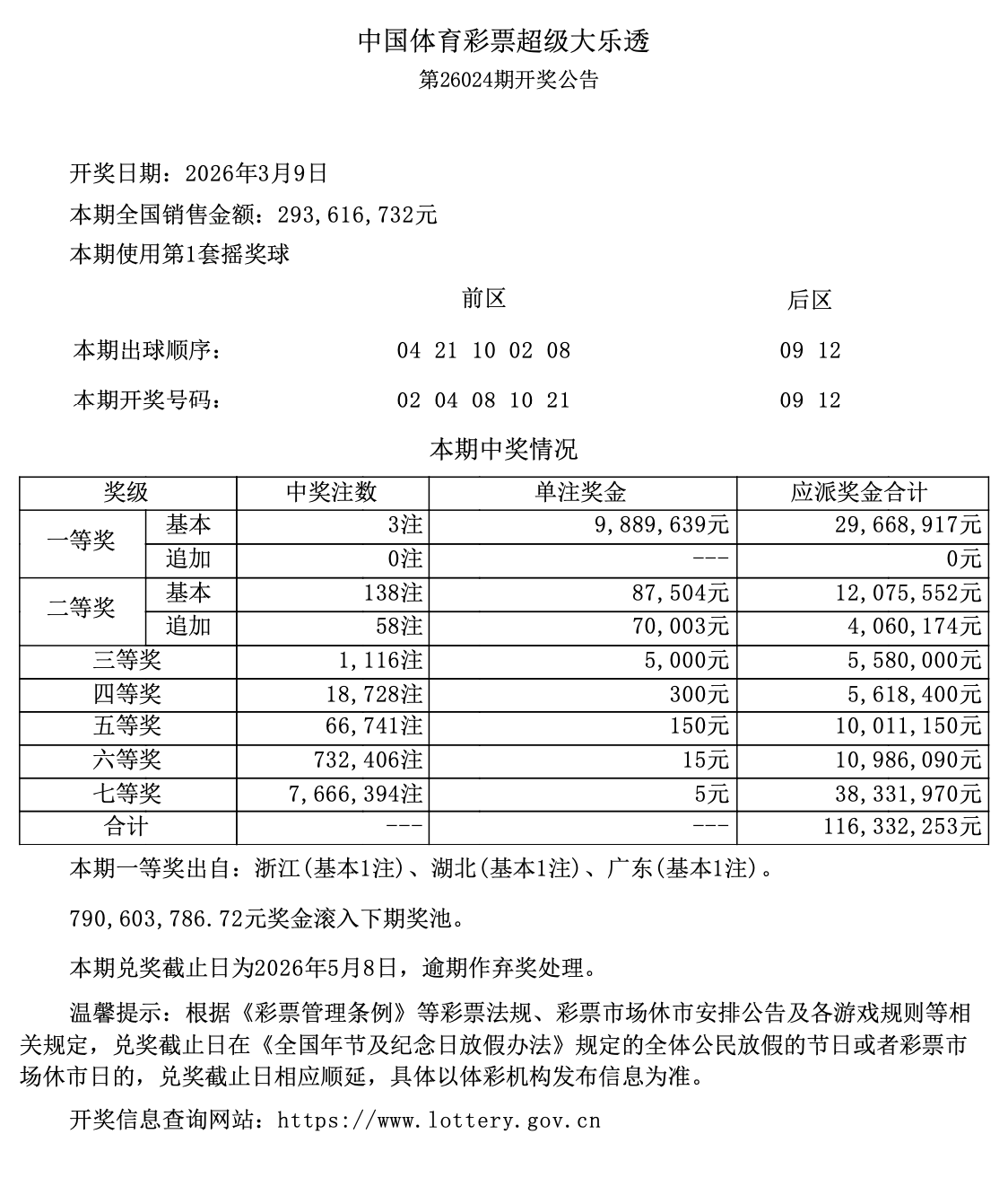 全国总中奖金额