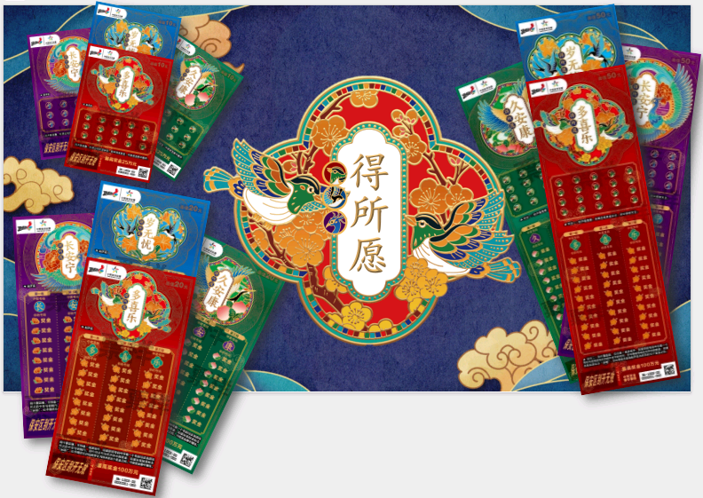 这三款新票以“愿”为核心主题,深度融合了传统文化与现代设计理念。票面分别围绕“多喜乐、长安宁、岁无忧、久安康”四大主题展开创作。这四句承载着国人千年美好期许的祝福语,通过精致的票面设计具象呈现。“得所愿”系列包含10元、20元、50元三种面值,满足了不同购彩者的需求。
