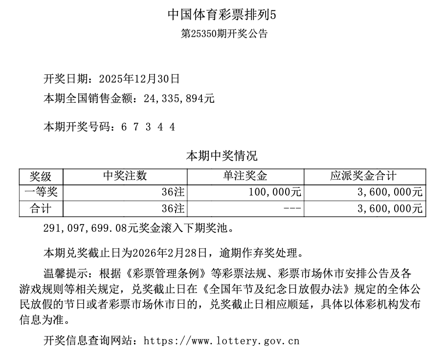 排列5 第25350期开奖 6 7 3 4 4