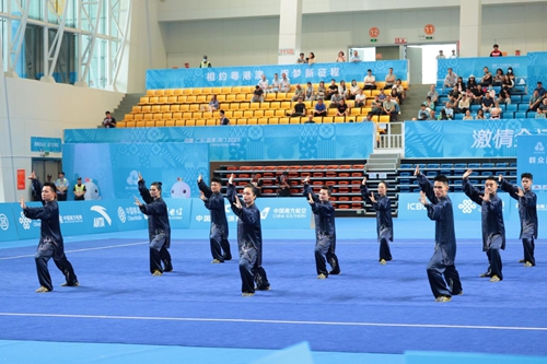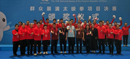 第十五届全国运动会群众展演太极拳项目决赛9月26日至27日在广东佛山高明体育中心综合馆鸣金。省武术中心选派6支队伍57名运动员参加全部项目比赛,最终斩获1个一等奖、1个二等奖和3个三等奖。