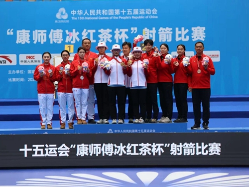 第十五届全国运动会射箭项目女子反曲弓团体赛11月19日在深圳市体育中心体育场落下帷幕。由马毅静、翟悦君、茹清宁组成的陕西队在与福建队的比赛中依靠单箭决胜时的稳定发挥,斩获铜牌。这是陕西女子射箭队自1983年组队以来,在全运会团体项目中取得的历史最佳成绩,为陕西射箭事业写下崭新一页。山东队摘得金牌,河南队收获银牌。