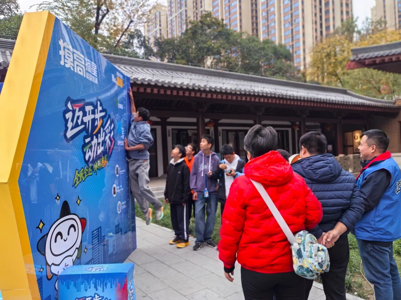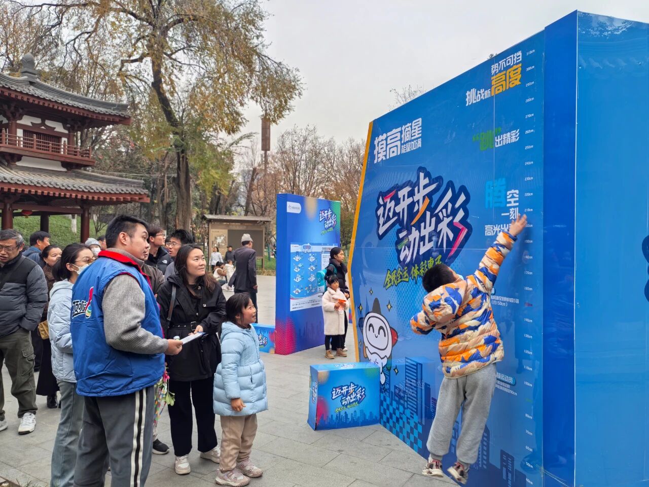 11月22日,西安中区站在兴庆宫公园举办“迈开步 动出彩”主题宣传活动。活动围绕“运动+公益”理念搭建互动场景,吸引众多市民踊跃参与。市民在签到处领取活动参与卡片后,依照指引依次完成三项互动游戏、打卡拍照、关注陕西体彩微信公众号以及加入“益起欢乐走”小程序,即可获得精美礼品。