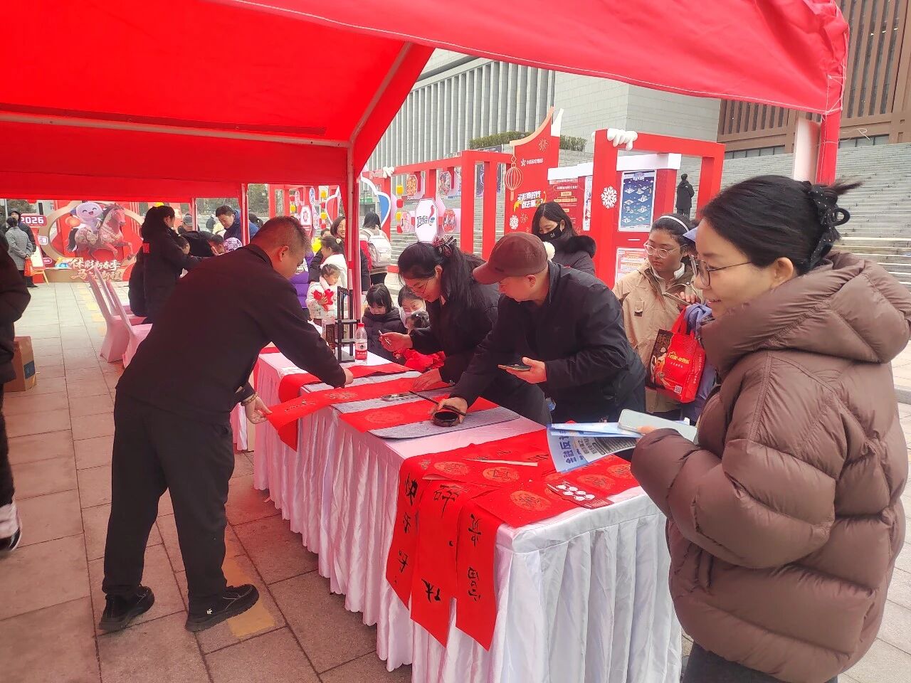 活动现场处处洋溢着浓郁的新年气息,“体彩新春季 马上启新程”主题标语醒目亮眼,成为省图高新馆门前一道独特风景线,全方位彰显中国体育彩票的品牌形象。精心搭建的体彩新春市集,以红灯笼、新春对联、特色节饰精心点缀,与图书馆的文化建筑相映成趣,将传统年味与文化底蕴完美结合,营造出独具一格的节日氛围,吸引了众多市民驻足打卡、参与体验。