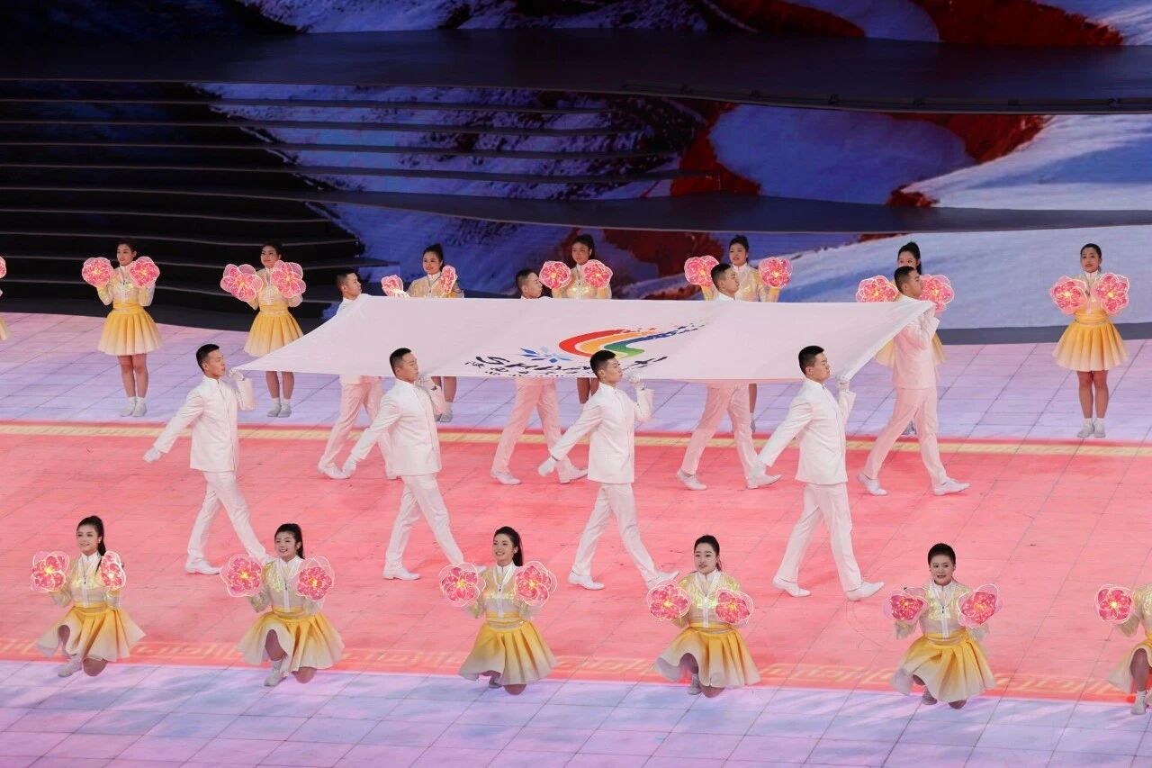 大文体表演环节中,以《驰冰燃雪向新程》为主题、以《古脉新承》《沸冬腾雪》《陕耀未来》为篇章相继精彩呈现,巨幅LED屏幕、光影效果、演员表演完美融合,向外界展示一个风光旖旎、向新向上的榆林,一个追赶超越、谱写新篇的陕西。