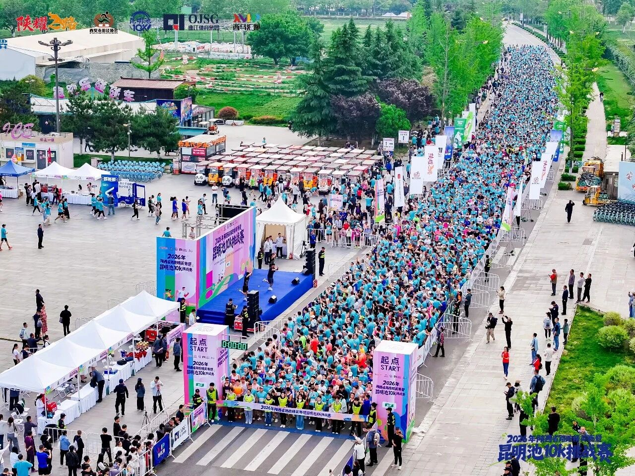 2026年4月19日,陕西省路跑精英赛暨西安市昆明池10K挑战赛火热开赛,吸引近3000名跑步爱好者齐聚赛场。