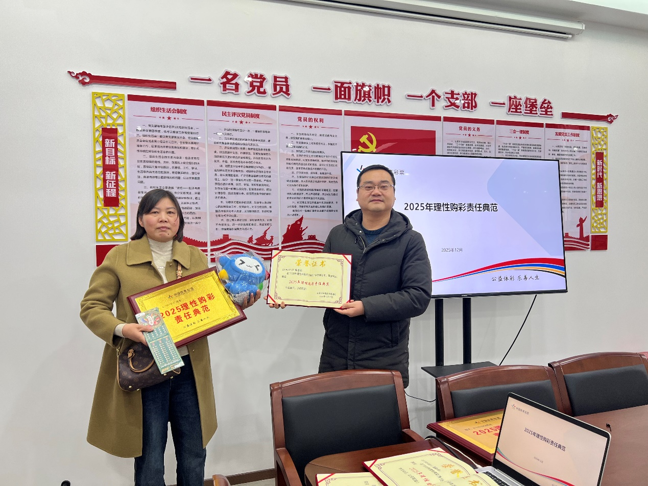 为持续深化责任彩票建设,厚植“快乐购彩 理性投注”理念,充分发挥先进典型的示范引领作用,安康市管理站严格遵照省中心责彩部统一部署,圆满完成“2025年理性购彩责任典范”本地评选工作。12月18日上午,颁奖仪式暨经验交流座谈会如期举行,6119020808曾宗莉、6119019107陈龙娥、6119010006范才本、6119020009方友斌、6119010016高彩华等六位体彩从业者凭借在践行责任彩票、推广理性购彩等方面的突出表现,荣获“2025年理性购彩责任典范”荣誉称号。