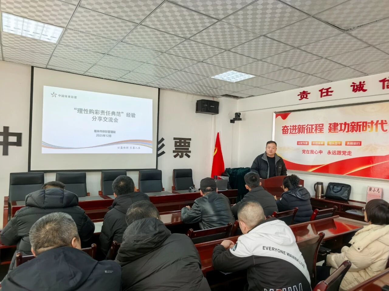 12月16日上午,在榆林市体育彩票管理站会议室内,一场以“理性购彩责任典范”为主题的交流会如期举行。来自榆阳区的部分体彩实体店代销者,围绕责任彩票建设、理性购彩引导等主题展开深入交流,共同为榆林体彩行业健康发展注入正能量。