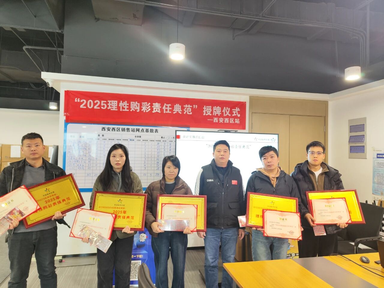 为了进一步倡导快乐购彩、理性投注理念,充分发挥典型事例的宣传引领作用,推动责任彩票建设在西安地区更好落地,理性购彩理念更好践行,西安西区销售站根据省中心工作要求积极开展了“2025年理性购彩责任典范”评选活动,最终评选出了5位理性购彩责任典范践行者,6133020004杨雷、6133020029吕姣姣、6133040006叶欣星、6133033711贾昆、6136005040周雨帆,他们以实际行动诠释着“公益体彩 乐善人生”的理念,为体彩事业高质量发展贡献力量。