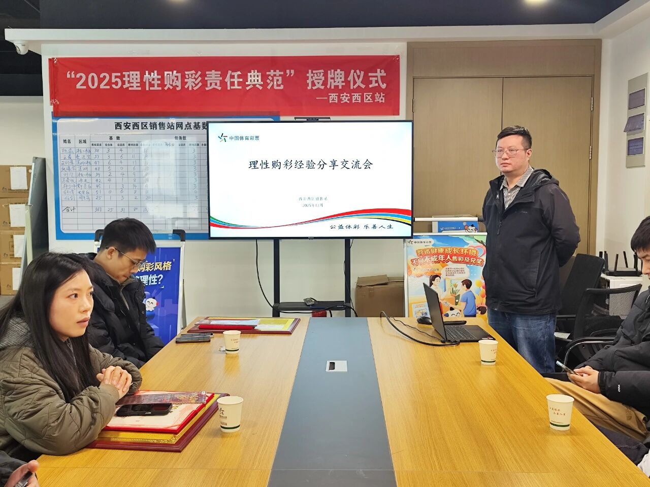 12月23日,西安西区销售站组织召开了“理性购彩经验分享交流会”。获得“2025年理性购彩责任典范”称号的代销者、销售员及购彩者参加了本次活动。西安西区销售站站长林勃为获奖者颁发了荣誉证书、奖牌及即开票奖品,对获得奖励的人员所做出的工作表示肯定,感谢他们为体彩事业高质量发展作出的贡献,希望后期继续发挥典范的引领作用,展现体彩人的责任与担当。